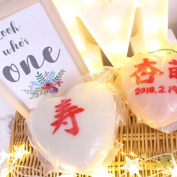 お餅は昔から神様に捧げる神聖な食べ物とされており、一升餅とは、一升分のもち米で作った餅のことです。一升分のお米はおよそ1.8kgですが、蒸して作るため2kgほどの重さに。地域や家庭によってさまざまな一升餅を使った初誕生の伝統行事が行われています。一升と一生をかけ、「一生食べ物に困らないように」という願いが込められている一升餅。「円満に過ごせるように」という意味を込めて大きな丸い形の一升餅が一般的ですが、最近はあとで食べやすいように小分けのお餅を選ぶ人も多いようです。カラフルなものやハートのもの、お米ではなくパンでできた一升パンなどもあります。