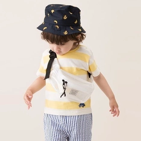 プティマインではりんごやスイカなどフルーツモチーフの帽子も種類豊富です。総刺繍が目を引くハットはカジュアルコーデが似合う男の子におすすめ。ブラックベースにバナナの柄はちょっぴりかっこいい雰囲気ですね。さらりとした素材感で日常使いにぴったりなアイテムです。