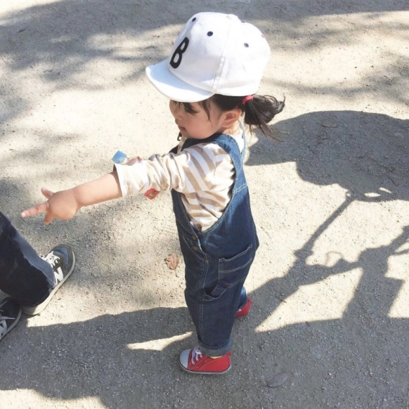 プティマインの定番、アルファベットロゴキャップは性別を選ばないデザインです。スポーティコーデやカジュアルコーデをぐっとトレンドっぽく見せてくれる便利なアイテム。お子さんのイニシャルロゴをセレクトしてかぶせているママも多いんだとか。