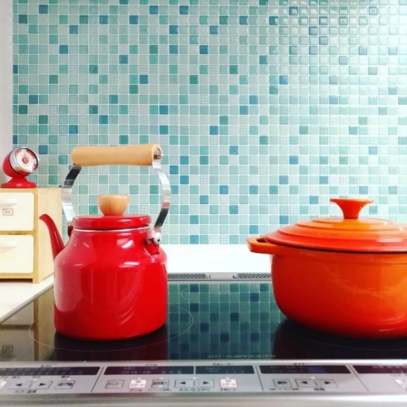 タイルをひとつひとつ貼っていく作業は大変ですが、タイルステッカーならその手間が省けます。シート状になっているタイルステッカーは、必要な部分だけ切り取って貼りつけることができて便利なアイテム。シートを切って一部分だけ使ってもキッチンが華やかになります。コンロ周辺で使う場合は耐熱性があるか確認を行ってください。
