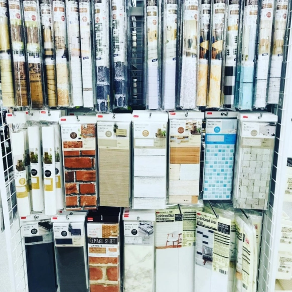 100円ショップやホームセンターでも、手軽に北欧風のキッチンにするためのお役立ちアイテムが手に入ります。<壁や扉の印象を変えるリメイクシート>