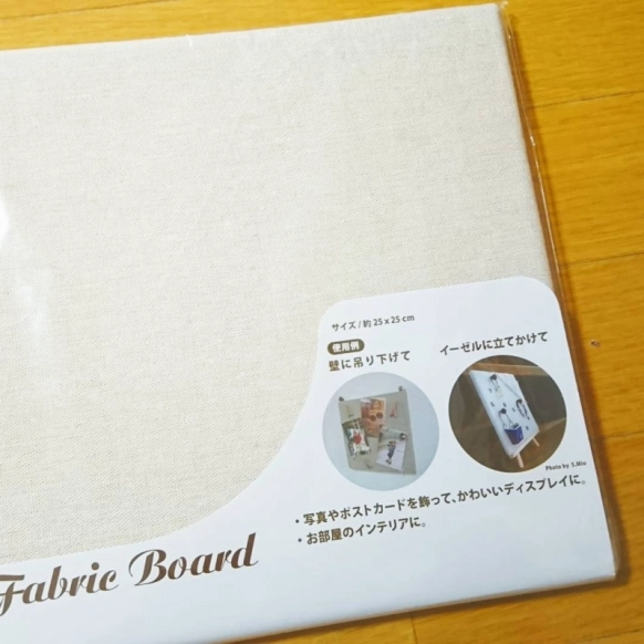 ファブリックボード作りにはセリアの無地のファブリックボードが使いやすいのでおすすめ。コルクボードでも代用可能です。2.台となる無地のパネルに、手ぬぐいやバンダナを貼りつけます。3.裏側は両面テープやタッカーで止めます。角をきれいに畳んで止めたらできあがり。
