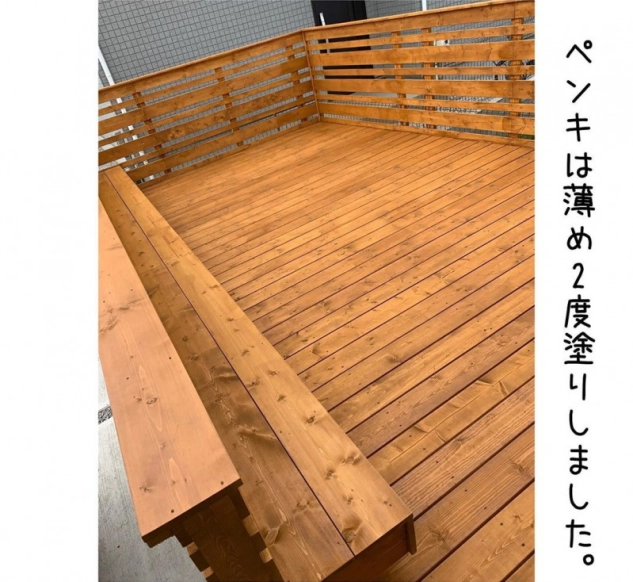 塗装をすることで、ウッドデッキがよみがえっていきます。きれいなウッドデッキを長く使うために、塗装は欠かせない作業です。