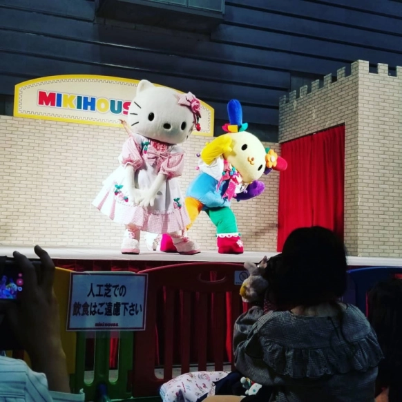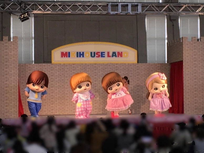 写真は小さな子どもに人気の抱き人形「メルちゃん」「ネネちゃん」が登場する歌とダンスのステージショーの様子です。ミキハウスランドでは、大人気ミキハウスキャラクターのゴーゴーカートくんのショーを始め、さまざまなショーやビンゴ大会などのイベントが開催されます。会場のスケジュールを確認して、お目当てのショーやイベントを楽しみましょう。
