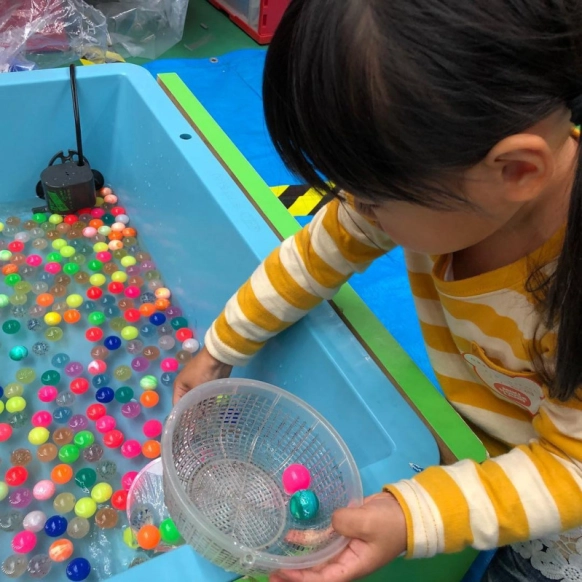 ボールすくい(1回200円)や、ヨーヨー釣り(1回300円)、キャラクターすくい(1回300円)などもあります。有料ですが子どもたちはとても喜びます!