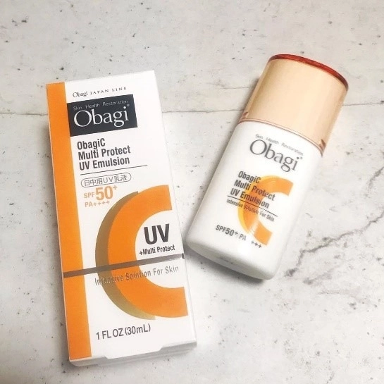 こちらは「マルチプロテクト UV乳液」です。これ1本で乳液・日焼け止め・化粧下地の役割を担ってくれる優れものです。使うたびに焼けにくい肌へとなり、日焼けによるシミを防いでくれる効果があります。日焼け止め独特の白浮き、べたつきもなく、“全然焼けない!”とリピする人が続出しているアイテムです。