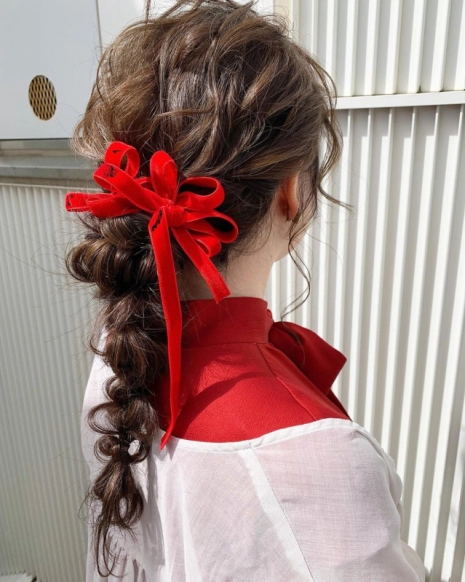 ・編み込みアップなどの仕上げにリボンタイプのバレッタ