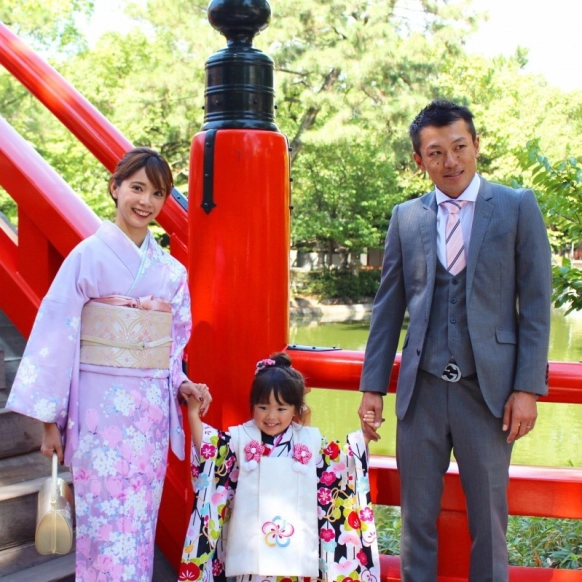 やっぱりママも着物を着たいですよね。お子さんが和装するなら、親も和装でそろえると統一感が出て良いかも!お子さんとママの持つ小物をそろえたりすれば、リンクコーデもできちゃいます。