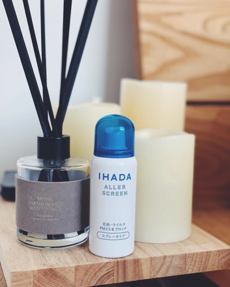 イハダのこだわりは、敏感肌の人にも安心な低刺激処方。肌の研究を続けてきた資生堂ならではの、快適な使いごこちもうれしいですね。シンプルなデザインで、ブルーのロゴのボトルがかわいいです♡【防御】に特化した商品は、花粉やウイルス・PM2.5をブロックする「イハダ アレルスクリーンEX」スプレーや「イハダ アレルスクリーンジェルEX」です。メイクのうえからでも使えるスプレーは、ミクロの霧が顔周りをコーティングして花粉などの吸着を抑えます。天然精油配合のジェルの香りは2タイプで、ピュアオレンジとすっきりタイプのユーカリミント。敏感な目元・鼻元に塗っても安心、1日1回の塗布でOKです◎