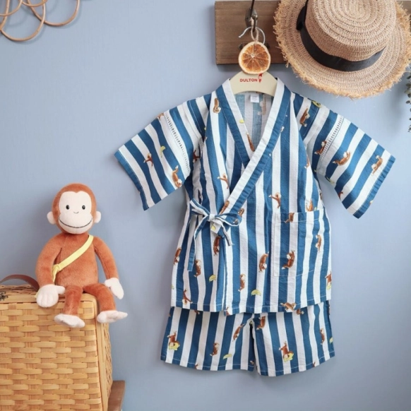 絵本やテレビで人気の「おさるのジョージ」コラボでは、男の子向けの甚平が登場!落ち着きのあるブルーストライプの中におさるのジョージがたくさん。元気いっぱいな男の子に着てほしい甚平です。価格:4,238円(税込)サイズ展開:100cm 120cm