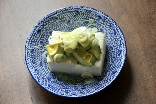 アボカド絹ごし豆腐焼きのり塩(できれば岩塩)ごま油白ごまカイワレ大根(あればでOK)