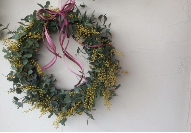 くすんだイエローが上品なミモザはグリーンとのコントラストがおすすめ。ナチュラルで元気な雰囲気に♡青みを加えるとさらにおしゃれさがアップします。