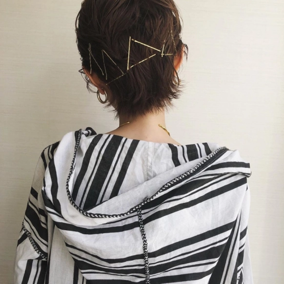 ヘアアレンジが難しいショートヘアなら、ウェットスタイリングでタイトにまとめたハンサムアレンジ!すっきりと出した首筋やちらりと見えるうなじがバツグンに色っぽく見えるはず♡ワンポイントにヘアアクセをつけ、お祭りの特別感をプラスして。