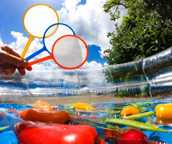 スーパーボールすくいのように見えますが、実は@k10zyさんが用意したのは“野菜すくい”☆すくうための紙つき枠は、ネット通販でも購入できます。キャンプでこんなイベントができれば、盛り上がること間違いなしですね!すくった野菜で料理を作れば、一石二鳥?