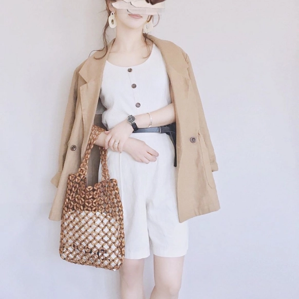 @ yoahiru.wさんが着ているのは『LOWRYS FARM(ローリーズファーム)』のリネンジャケット。トップスとボトムを白で統一しているので、ジャケットなのに柔らかい雰囲気が出ています。バッグなどの小物で季節感を取り入れると、ジャケットが重たくならず◎