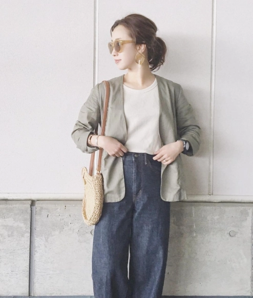 ジャケットの種類もさまざまで、ネイビー以外のカラーも豊富。@ matsuten522さんは、GUのリネンノーカラージャケットを着用。リネン素材は涼しく夏場の羽織としても使えますよ。珍しいノーカラーやカーキの色味は、かちっとしすぎない大人のカジュアルスタイルに最適ですね。