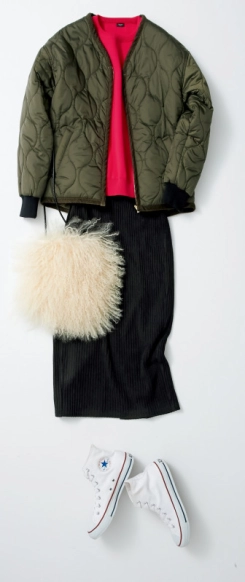 ブルゾンとは、ゆったりとしたつくりのボリュームのあるアウタ-のことです。着痩せも意識してコーデに取り入れてみると良いですね。