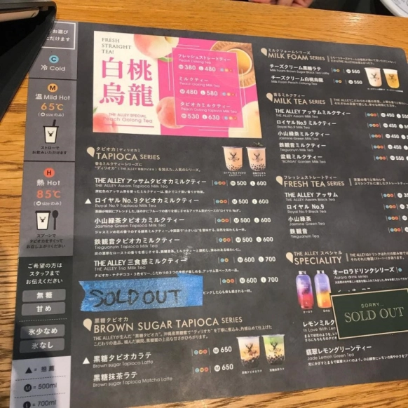 ・THE ALLEYはタピオカMサイズが500円