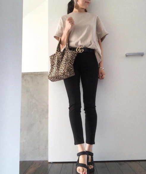オーバーサイズのカットソーは普通に着るとブカブカでだらしなく見えてしまうことも。@tsukiko9さんはXLサイズのカットソーをパンツにインして袖を少し折ることでゆるシルエットを出しながらも素敵に着こなしていますね。