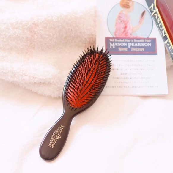 くせ毛の人には猪毛のような固めの毛を使ったブラシがおすすめ。こちらの『MASON PEARSON(メイソンピアソン)」のブラシは猪毛を使っており、お値段は1万円を超える高級ブラシ。頭皮にほどよい刺激を与えるようクッション部分にこだわって作られており、クッションブラシとしても優秀なんだとか!レディースはもちろん、頭皮にお悩みのメンズにもおすすめです。