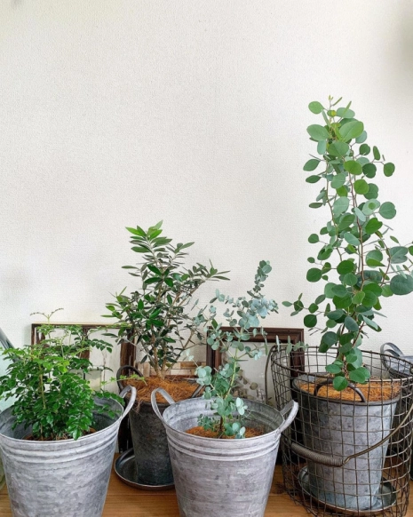 @ kyoko2613さんのお宅のユーカリは、ブリキ素材のおしゃれな鉢で育てられています。まるで、カフェなどおしゃれなお店のようなインテリアですね!さまざまなデザインの鉢を探すには、ネット通販もおすすめ。