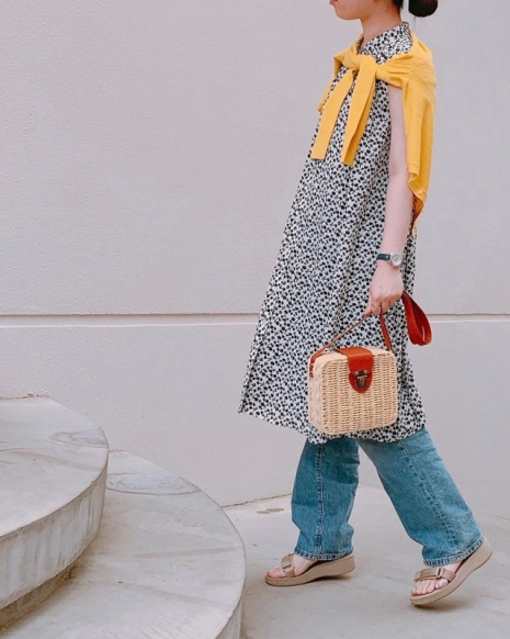 また色が変われば雰囲気も様変わります!暗めの色を選べばノースリーブでも秋冬まで着まわすことが可能です。このインスタグラマーさんのようにアイテムに黒を選んだり、茶色や深みのある色を選んだりすれば、秋冬のコーディネートの幅も広がりますよ。お手持ちのチュニックワンピースで試してみては?