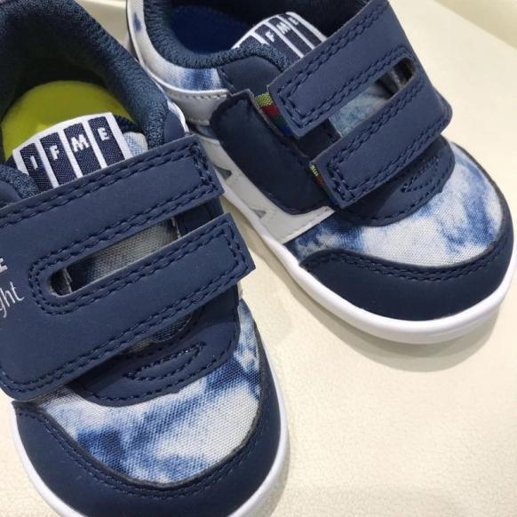 こちらはしまむらグループの「バースデイ」が手掛けるオリジナルブランド、『futafuta(フタフタ)』とのコラボスニーカー。グレーやブルーを取り入れた優しいデザインは、ブランドイメージの北欧風テイストを再現。シンプルなベビーコーデにもハマりそうです。