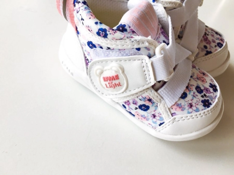 歩きのおぼつかない子どもにとって、靴のフィット感はとても大切。キネティックベルトタイプのイフミーライトならホールド力もさらにUPし、歩いているときに脱げたり足がねじれたりすることもありません。型番22-9004のこちらも、小花柄がとてもかわいらしいですね♡ベビーのピュアさを引き立ててくれるので、ファーストシューズとしてもおすすめです。