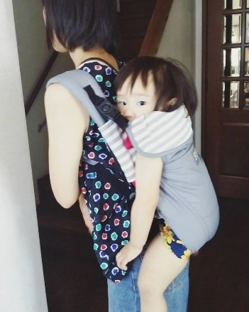 抱っことおんぶ兼用タイプのママの腰ベルトが無いタイプは、子どもがたっちできるようになる1歳半から2歳ごろだと、足を入れて簡単におんぶすることができるアイテムです。@aiko1_6さんのおんぶひもは『Arica(アップリカ)』の抱っことおんぶ兼用のものだそう。
