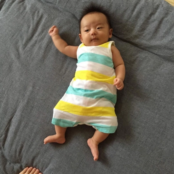他のメーカーと比較すると肌着は特に小さめに感じる方もいるかもしれませんが、赤ちゃんにとってぶかぶかのお洋服は着心地が悪く動きにくく感じます。プチバトーのものは伸縮性がしっかりあるので、体にしっかりとフィットしたジャストサイズで着させてあげるのが正解ですよ!
