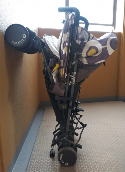 双子用ベビーカーは大きいので、置き場所を考えないといけないですよね。折りたたんだときにどれくらいコンパクトになるのかも重要なポイントです。三つ折りでコンパクトになるものや二つ折りで自立するものなど、メーカーによって特徴があるのでホームページやカタログなどで確認を。また、子どもを抱えてたたむ場面もでてくるので、たたみやすさも併せて確認しておきましょう。