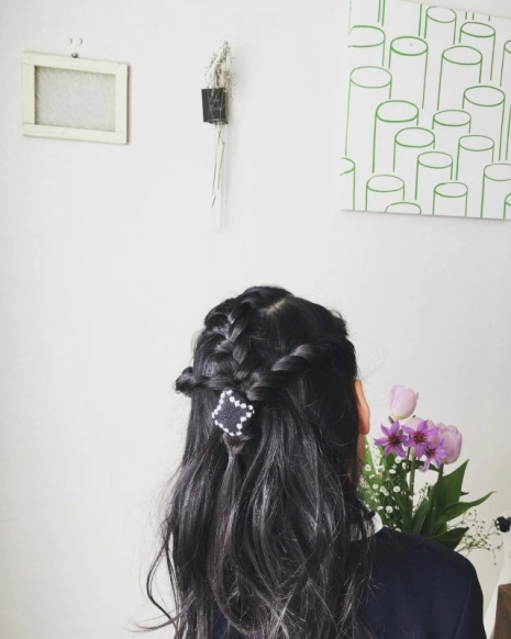 ピアノの発表会などには、編み込みとくるりんぱで他の子と違ったワンランク上のヘアアレンジもよいですね。<編み込みとくるりんぱのアレンジ法>