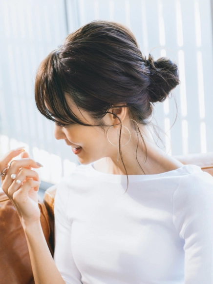 ミディアムヘアには簡単おだんごアレンジがおすすめ♡ハチ下で髪全体をまとめて、毛束を丸めるようにつかんだらゴムで結びましょう。毛先はおだんごに巻きつけてピンで固定します。こちらのヘアアレンジは無造作に仕上げるのがコツ!アレンジ前にスプレータイプのワックスを髪全体になじませ、仕上げにもう一度スプレーして固定すると長持ちしますよ。