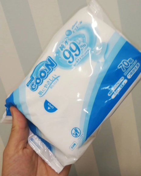 ・グーンのおしりふきは水分量多めで洗い流せるようにふける!