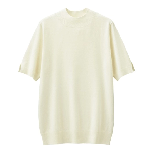 夏に1枚で着用するのはもちろん、秋冬にカーディガンと合わせても使える「ハイネックスリットスリーブセーター(半袖)」590円(税抜)。ハイネックがイマドキバランスNo.1♡ほどよいフィット感でキレイめな着こなしが叶います。