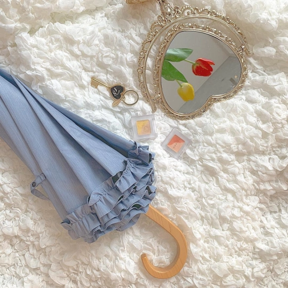 長傘タイプの日傘は、持ち手の部分がしっかりしていて握りやすく丈夫◎傘のシルエットがきれいなものが多く、デザイン性を重視するなら長傘がおすすめ。ただ、持ち歩くときに邪魔になるというデメリットがあります。