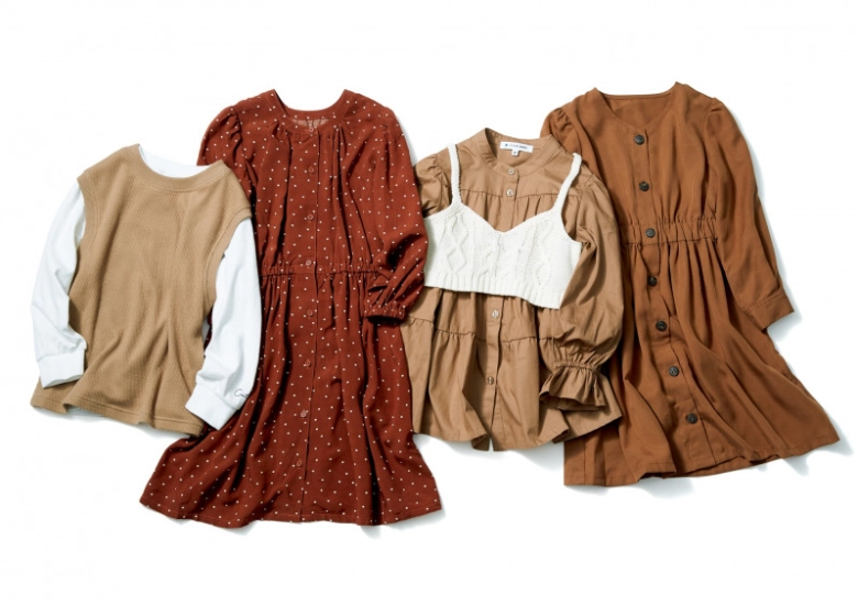 (写真右から)「マエボタンVネックシャツワンピース」3,229円(税込)袖にボリュームがあり、着たときのシルエットもかわいらしいワンピースです。少し厚めの生地感で、羽織りとしても使えます。「ベストツキティアードチュニック」3,780円(税込)チュニックブラウスとニットベストで、トレンド感満載のセットアイテムです。ニットベストは洗濯機洗い可能なのでお手入れも楽チン!「2WAYスタンドネックワンピース」3,229円(税込)前後を替えて違った雰囲気を楽しめる2WAY仕様。前を開ければ羽織りにもなるので、季節の変わり目にも便利です。「ベストツキレイヤード」3,229円(税込)ニットベストつきトップスは別々にも使えるので、いろいろなコーデが楽しめます。カットソーの袖に入ったさりげないロゴもポイント。