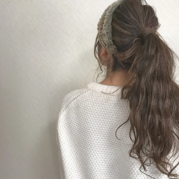 デザイン性のあるヘアバンドなら、あえてシンプルなヘアアレンジもアリ!コテで波ウェーブにした髪をポニーテールにして、今っぽく軽やかなアレンジに仕上げてみてはいかがでしょうか。