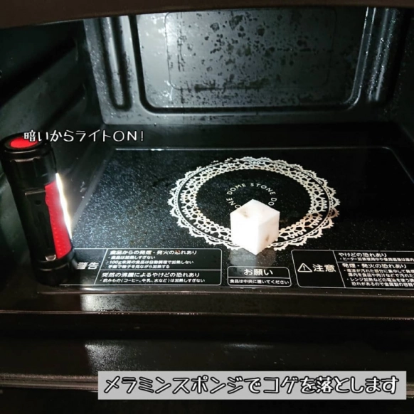 アルカリ性の重曹は、酸性の汚れである油や焦げを中和して落としてくれます。@akko.2no3さんの電子レンジ掃除のやり方を、順を追って見てみましょう。