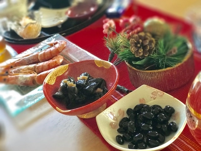 黒豆のまめにあやかって、まめで健康に過ごせるようにという願いが込められています。また、作るときにしわが出るように煮て、しわが出るほど長寿でいられますようにという願いもあるのだそう。