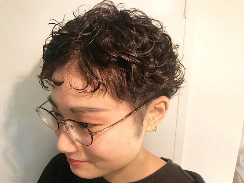 メンズっぽく耳上あたりまで刈り上げたベリーショートのおしゃれヘア。強めのパーマをかけることで、くせ毛をカバーすることが可能に。耳がすっきりと見えるため、ピアスをつけた耳元おしゃれを楽しめるのもこのヘアの魅力。小顔効果も抜群ですよ♡