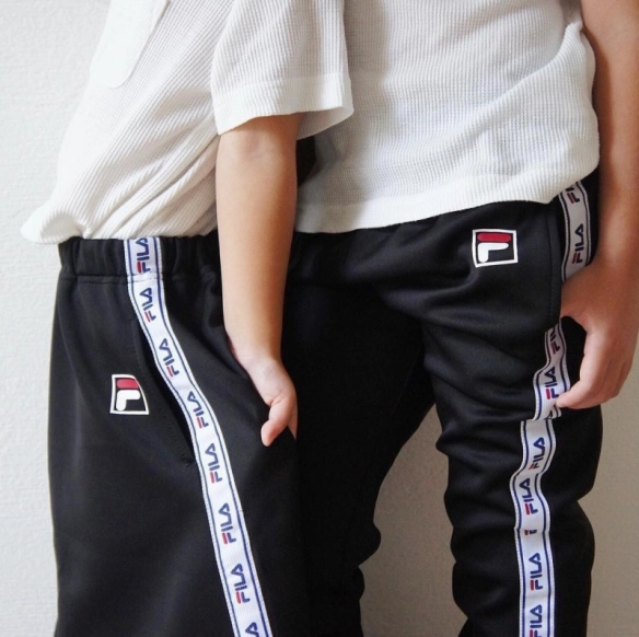 @k___uroさんのお子さんのジャージコーデです。しかも兄妹リンク♡ジャージは『FILA(フィラ)』のもの。Tシャツは『バースデイ』、靴はコンバースでそろえています。