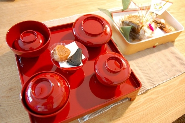・一汁三菜を盛りつける漆塗りのお椀やお膳など