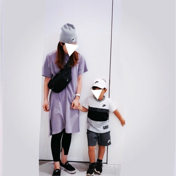 ナイキの人気の秘密は、リンクコーデがしやすいところです。大人サイズと子どもサイズで、デザインが同じものや似たものが販売されているので、服から靴までそろえることも可能です。デニムに同じデザインのナイキのTシャツと靴をそろえれば、簡単に親子コーデや家族コーデができます。