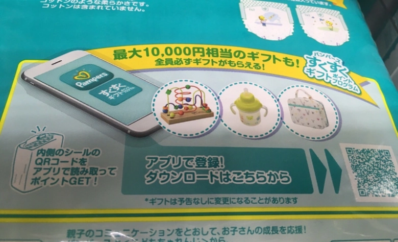 パンパースの商品には、QRコードと英数字コードの書かれたシールが貼ってあるのをご存じでしょうか?すくすくポイントプログラムとは、このシールに書かれているコードを登録することでポイントが貯まるポイント制度のこと!おむつを買って中身だけ出して袋ごとシールも捨てていたという方には、ぜひ知っていただきたいプログラムです。
