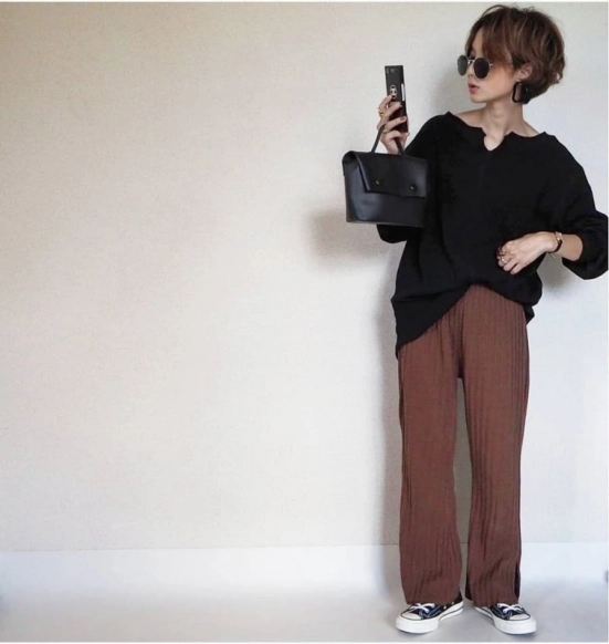 @amoria______さんがはいているのは黒のチャックテイラー。ボトム以外を黒で合わせているため、落ち着いた雰囲気です。