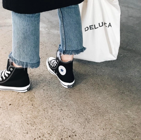 オールスターらしさで選ぶならハイカット!足首までしっかりと固定することができるため、フィット感抜群!ブーツのようなおしゃれなシルエットも魅力です。パンツと同系色を選べば、一体感が出て脚長効果も期待できますよ。@mi.chua.kさんがはいているのは、黒のハイカット。黒はどんなアイテムとも合わせやすい定番カラー。迷ったときや1足目には黒を購入する人が多いようです。