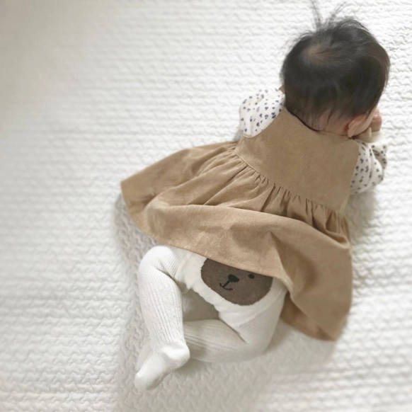 レイヤードワンピースに合わせれば、おしゃれなタイツコーデの完成!マンネリしがちなベビーのコーディネートは、タイツを取り入れるだけでバリエーションが増えます。ワンピースの他にも、スカートのコーディネートに合わせるのもおすすめですよ。