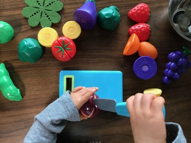 子どもは色からも刺激を受け、脳の発達に影響しているとのこと。なので鮮やかな色のおままごとセットが良いかも。