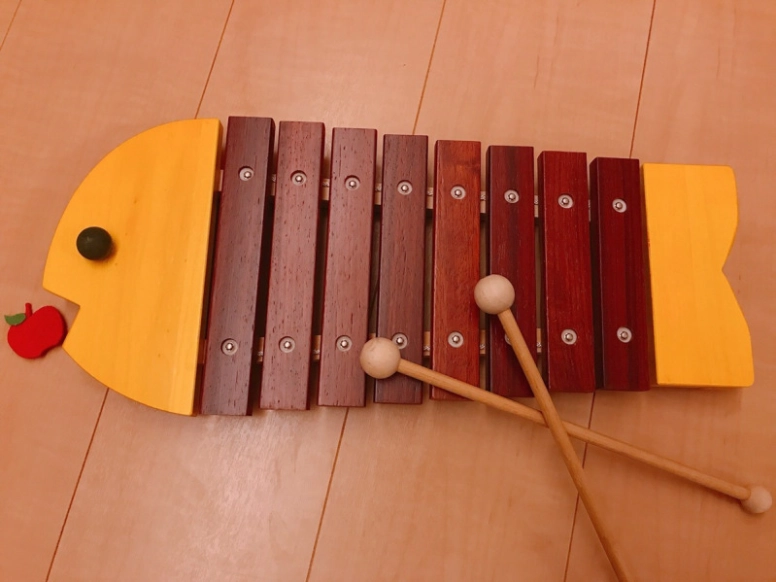 こちらの商品は、『BorneLund(ボーネルンド)』のお魚シロフォン(黄)です。きちんと調律された本格的な木琴ですよ。